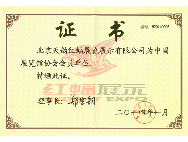 中國展覽館協(xié)會會員單位證書