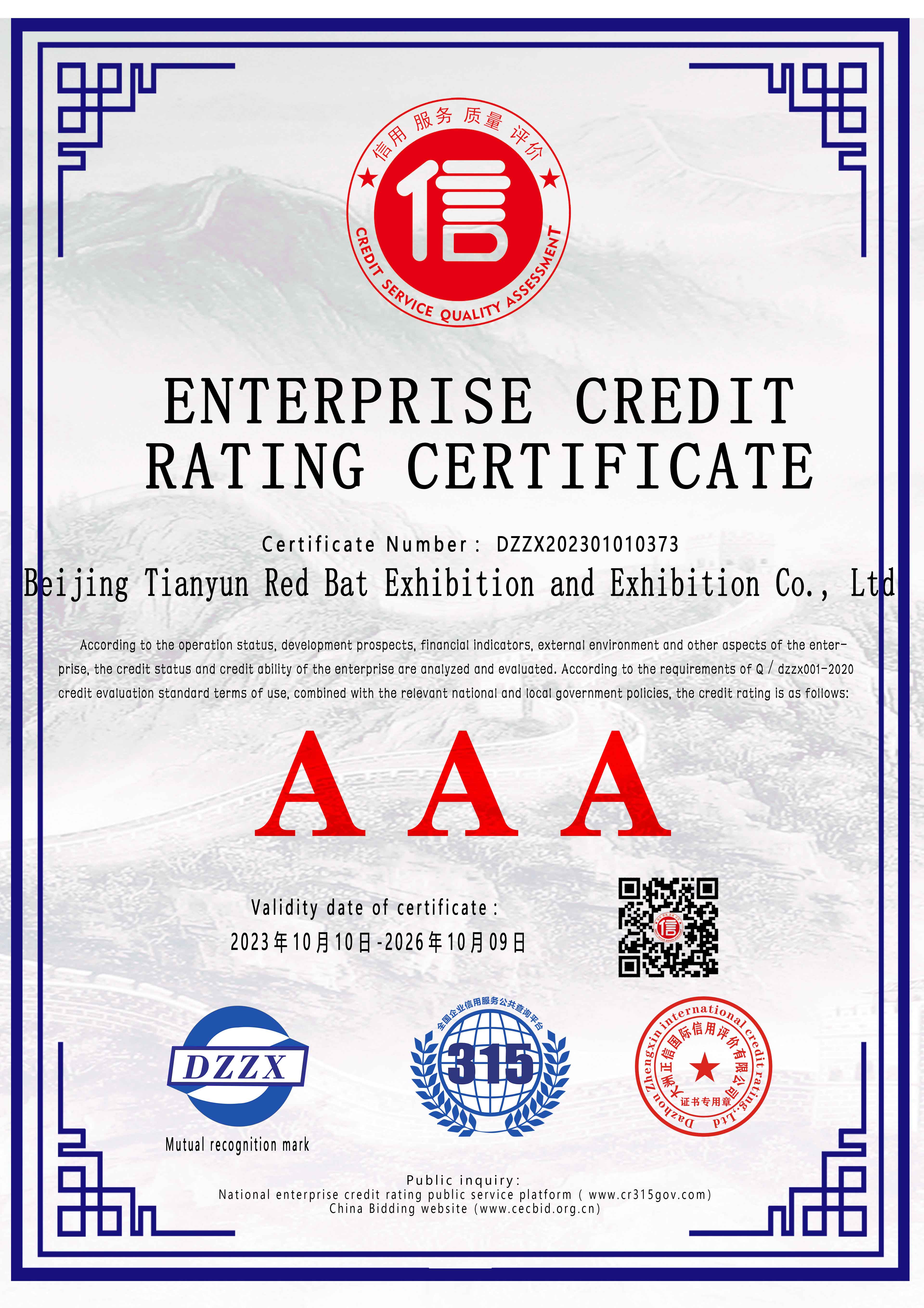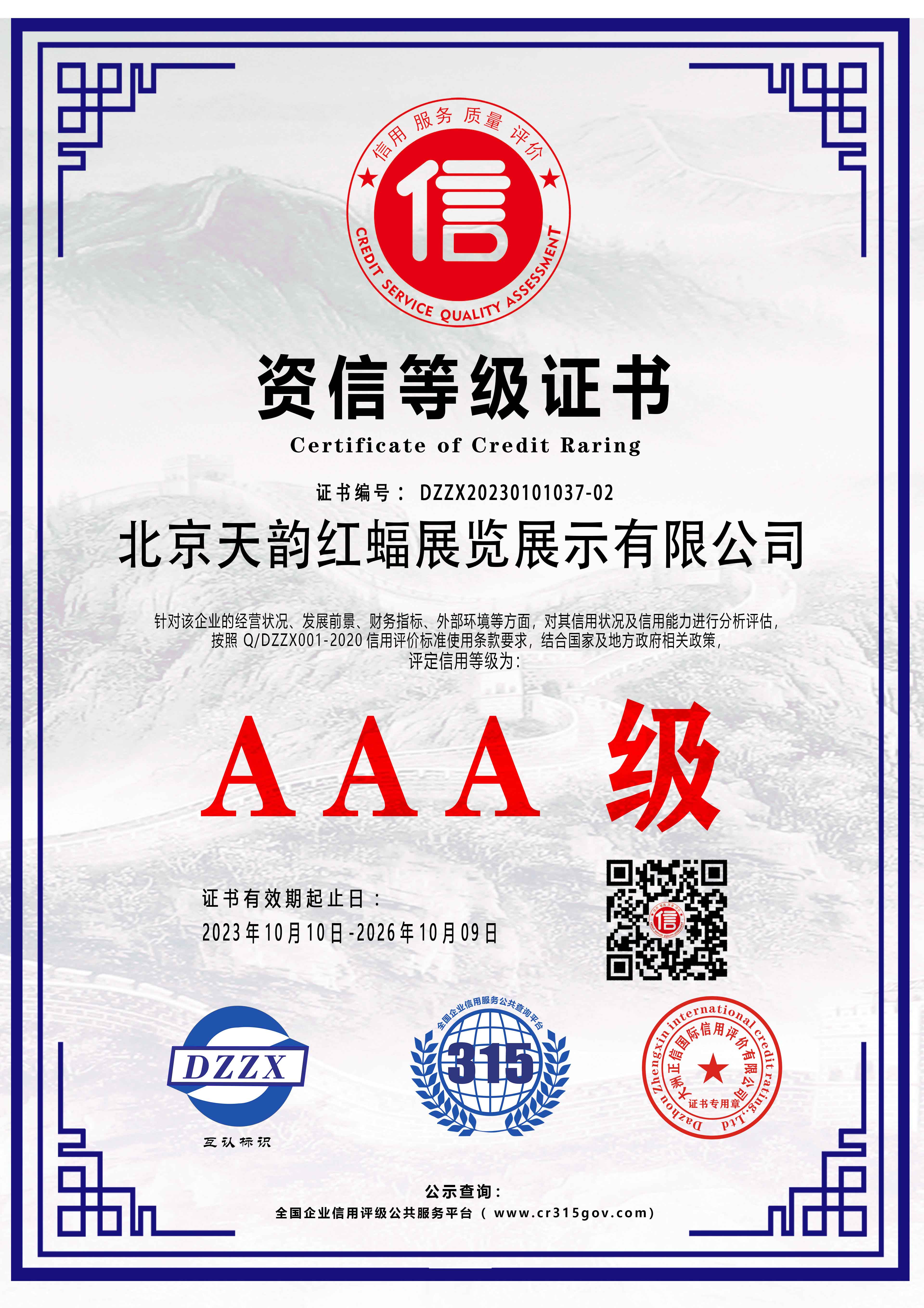 企業(yè)信用等級證書(主證英文)