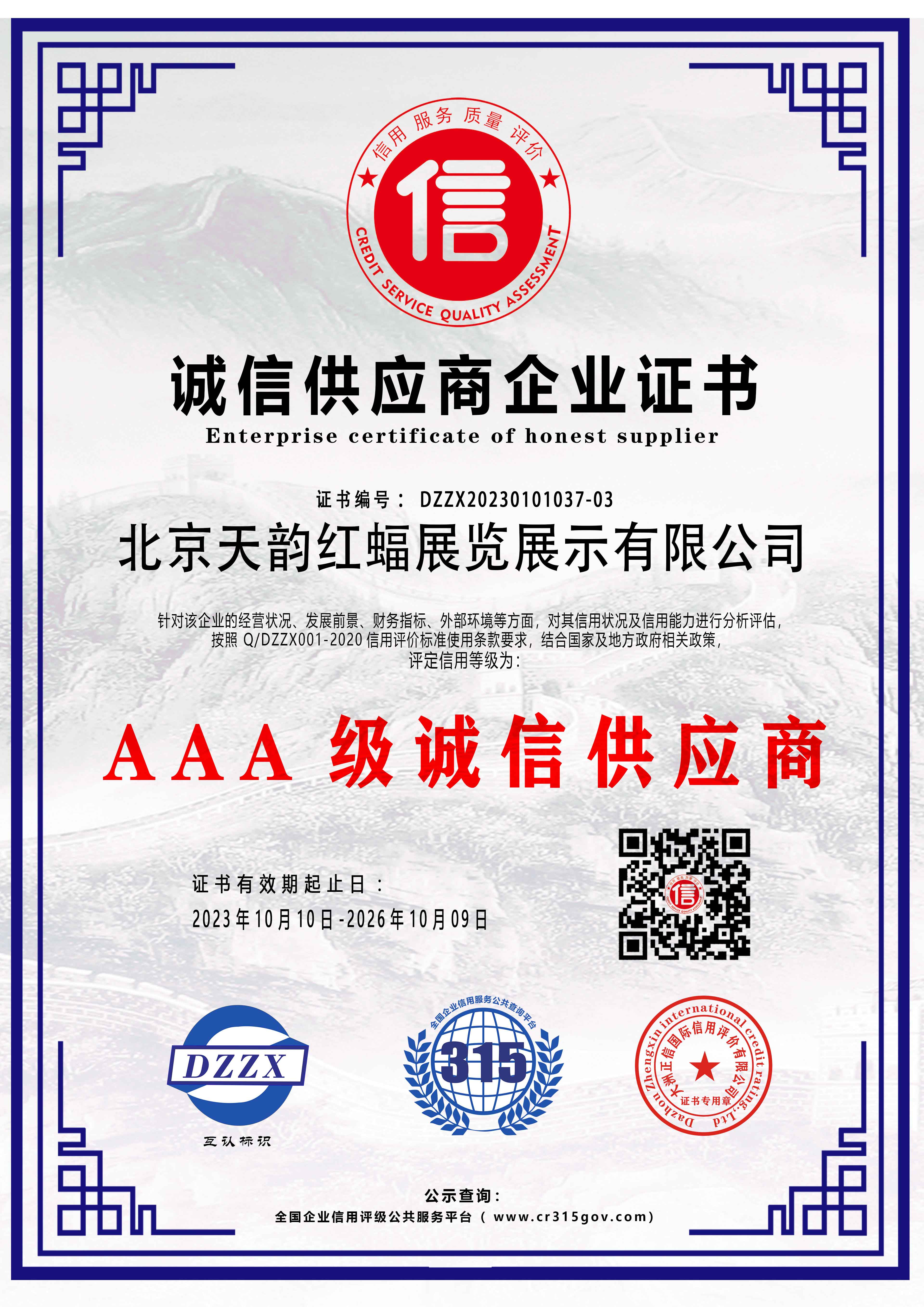 誠信供應(yīng)商企業(yè)證書