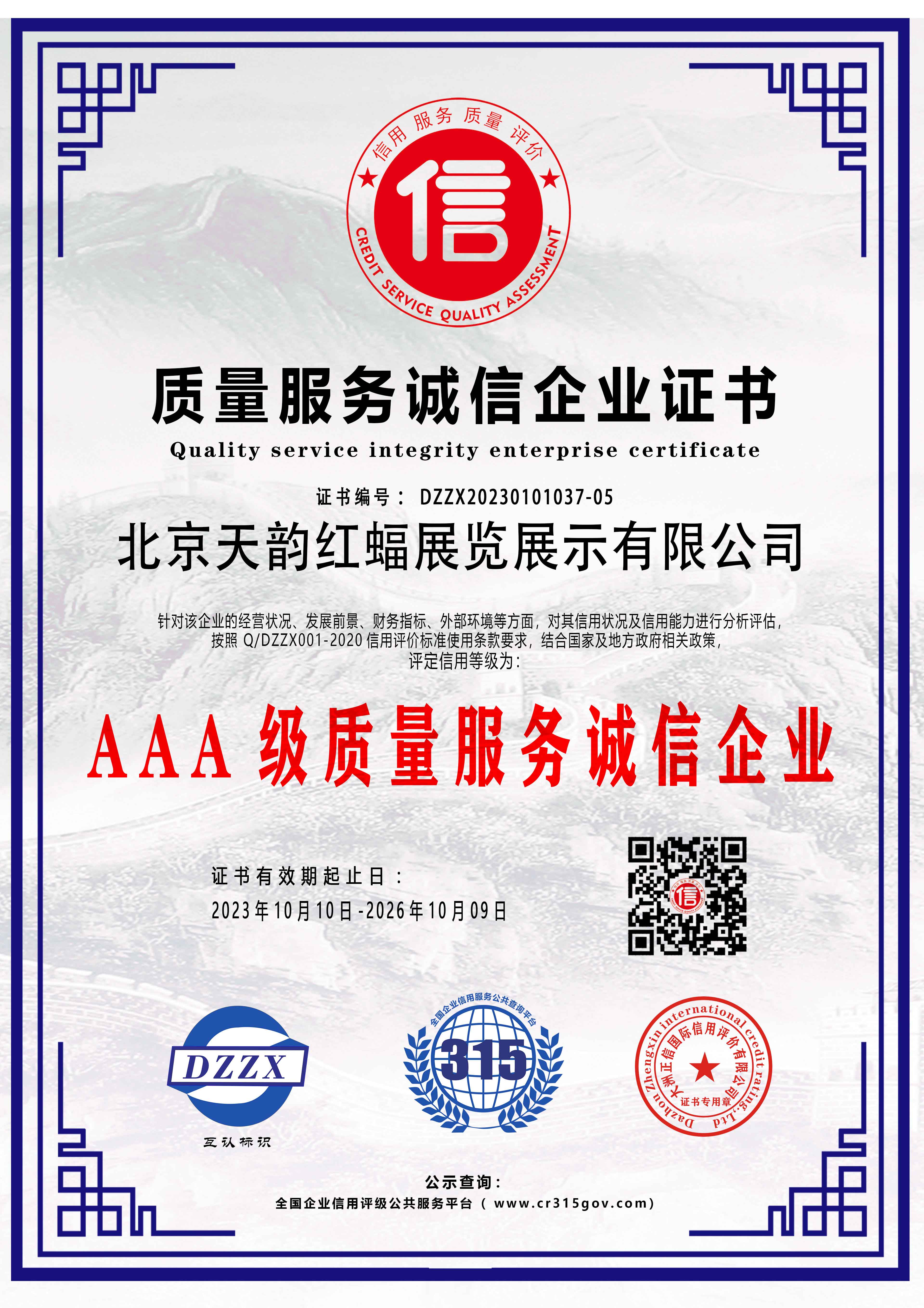 質(zhì)量服務(wù)誠信企業(yè)證書