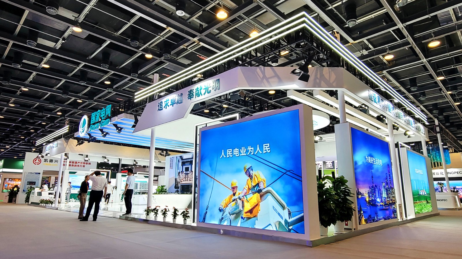 我們在2022中國國際服務貿易交易會上,以16小時完成國家電網300平方米展臺平面及3D設計,用時4天高標準高質量的完成了展臺搭建任務,并得到了國家電網董事長和相關領導的高度評價,創造出具有代表性的“紅蝠速度”